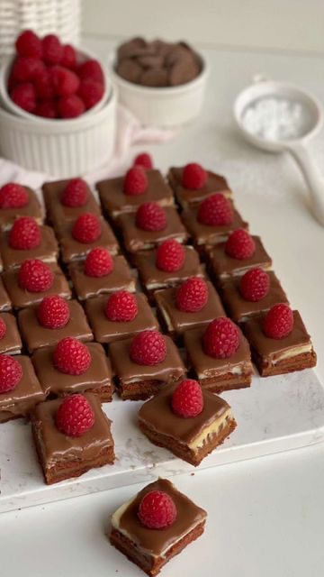دخليها الثلاجة، وبعد ما تبرد تمامًا قطّعيها مربعات، وزيّنيها بالتوت أو أي فاكهة تحبينها 🍓